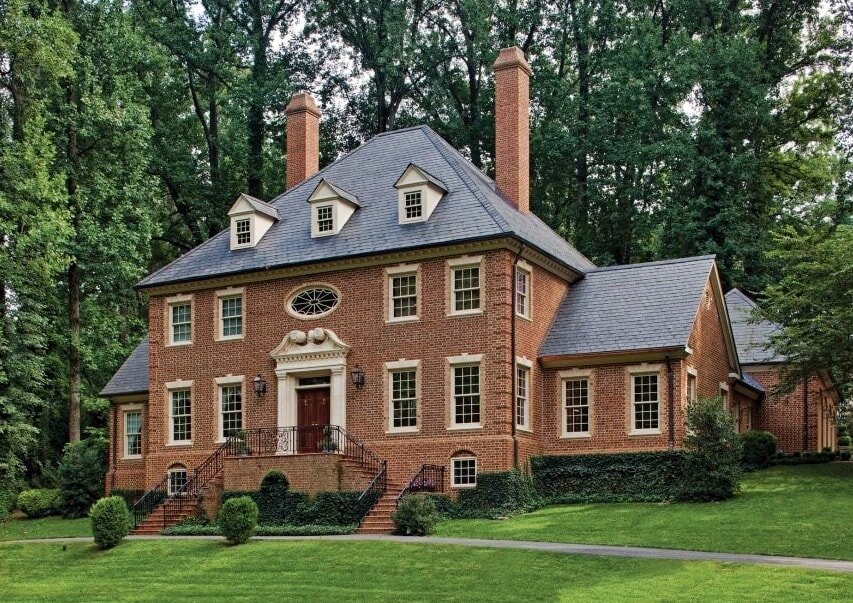 Георгианский стиль (17–18 вв.). Здесь мы видим симметричную планировку и использование прямоугольных форм, неброский декор, синхронное размещение окон, парадную дверь, обрамлённую колоннами.